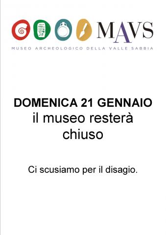 Ci scusiamo per il disagio ma DOMENICA 21 GENNAIO il museo resterà chiuso.