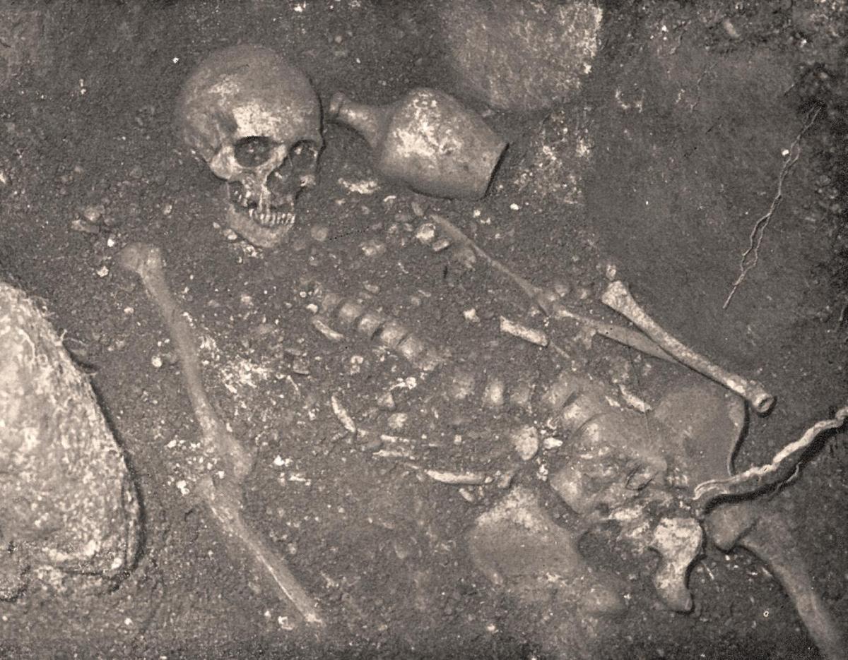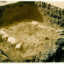Nella foto si vede la tomba numero 3 con l'olpe a corredo.