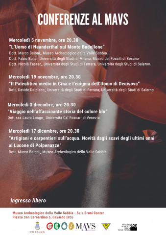 Le conferenze si svolgono nella sala conferenze del Museo Archeologico della Valle Sabbia di Gavardo, piazzetta San Bernardino 5 (ingresso anche da piazza De Medici), alle ore 20.30. Ingresso libero.