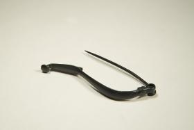 mancante dell’ardiglione, decorata a fila di trattini trasversali obliqui incisi sulla sommità contenuti entro due file longitudinali e coppie di trattini trasversali. Molla a doppio avvolgimento. Oggetto di ampia diffusione con particolare concentrazione nelle valli alpine e prealpine centro-orientali, databile nel VI secolo a.C. o ai primi decenni del successivo.