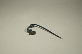 con avvolgimento ferma pieghe di verghetta a sezione quadrangolare, mancante della staffa e di parte dell’arco. Molla a doppio avvolgimento. Oggetto di ampia ma non abbondante diffusione in zona prealpina databile nel VI secolo a.C. o ai primi decenni del successivo.