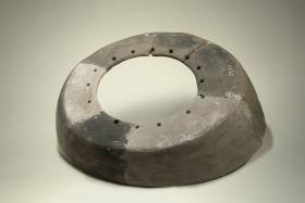 Grande recipiente con fondo con ampio foro circolare e piccoli fori lungo il bordo. Si tratta di un tipo di vaso rinvenuto in un numero piuttosto scarso di esemplari