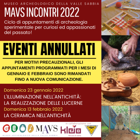 Si comunica che a causa della situazione pandemica, in via precauzionale gli appuntamenti di gennaio e febbraio 2022 dei "MAVS INCONTRI" sono annullati fino a nuova comunicazione.