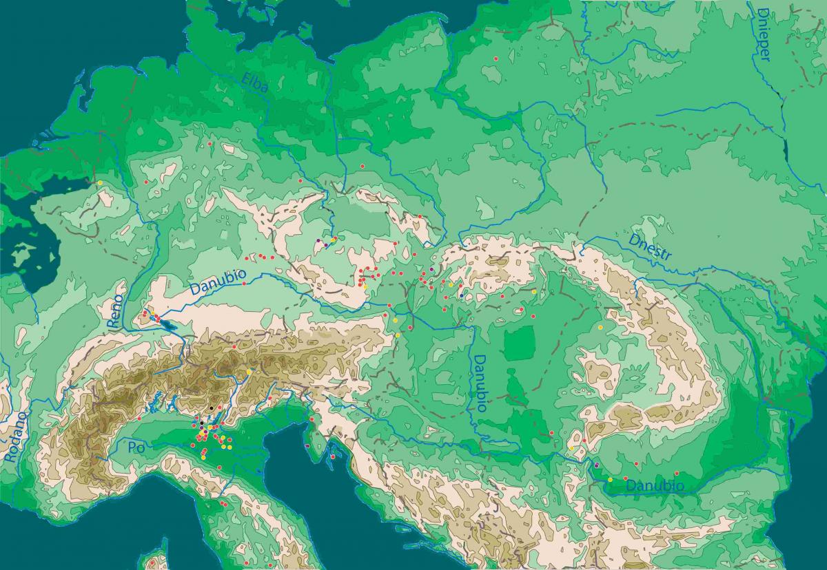 | Water green, sky blue necklaces Towards the end of the III Millennium B.C. in Europe necklace beads made of a particular substance called faience begin to circulate, a sort of siliceous paste with a glassy surface, which can be considered the ancestor of glass. The lively blue-green colour, given by the copper powder, and the iridescence produced by the vitrification made these objects particularly sought after. Beads are mainly present in north-western Europe (England and Brittany) and in central Europe (Bohemia, Moravia, Slovakia, Austria, northern Italy) starting from the early Bronze Age phases. In northern Italy these beads are known in a few sites, among which 4 pile dwellings stand out: Lucone, Lavagnone, Bande di Cavriana and Cavaion Veronese.This technique had already been known in the East for two millennia, but it is not witnessed, except from the Middle Bronze Age, in the central Mediterranean. Was the European one therefore an independent production? Or this technique arrived along the Danube valley and not through the Mediterranean? |