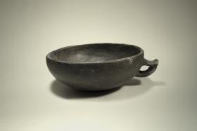 Tazza emisferica con ansa a gomito con breve appendice asciforme e fondo ombelicato (cioè con rientranza centrale). Nella fase avanzata del Bronzo Antico diventano comuni le forme aperte e basse come le tazze e gli scodelloni emisferiche. Spesso queste forme presentano una decorazione cruciforme secondo uno stile detto Barche di Solferino, dal sito dove per la prima volta è stato riconosciuto. Lo sviluppo di queste forme probabilmente è collegata a un altro modo di consumare i cibi.