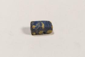 Vago di collana in pasta vitrea blu e gialla, forato nel senso della lunghezza, et‡ tardoromana.
