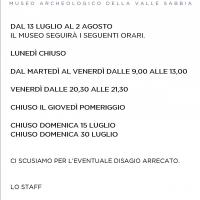 Dal 13 al 2 agosto il museo seguirà un orario ridotto. Aperto dal martedì al venerdì dalle 9,00 alle 13,00.