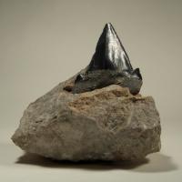 Un dente di Carcharodon sp., uno squalo dell’Oligocene, dalla Rocca di Manerba sul Garda (Brescia...