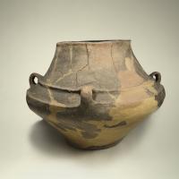Vaso a forma biconica con quattro anse impostate e decorazione a cordoni plastici. La decorazione...