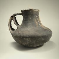 Brocca di forma schiacciata con ansa con ponticello interno. Forma non molto comune, di indubbia...