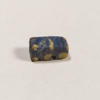 Vago di collana in pasta vitrea blu e gialla, forato nel senso della lunghezza, et‡ tardoromana....