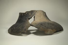 Boccale a corpo globoso con risega (cioè il profilopresenta un piccolo gradino orizzontale) con ricca decorazione incisa con motivi propri dello stile Barche di Solferino applicati a una forma vascolare di tradizione più antica.