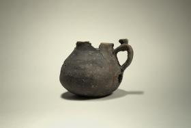 Boccale a corpo piriforme (a forma di pera) con ansa a gomito con appendice apicalea bottone e fondo ombelicato, cioè con un rientramento centrale. Gli elementi , tipici della Cultura di Polada, che sono posizionati sulla parte superiore dell’ansa avevano la duplice funzione sia di decorazione, sia di aiutare a trattenere in posizione oriozzontale il recipiente. Il fondo ombelicato invece dava maggiore stabilità al vaso quando era appoggiato a una superficie. Il boccale è il vaso più caratteristico della Cultura di Polada, soprattutto nelle sue fasi più antiche. Serviva probabilmente per mangiare alimenti semiliquidi e per bere.